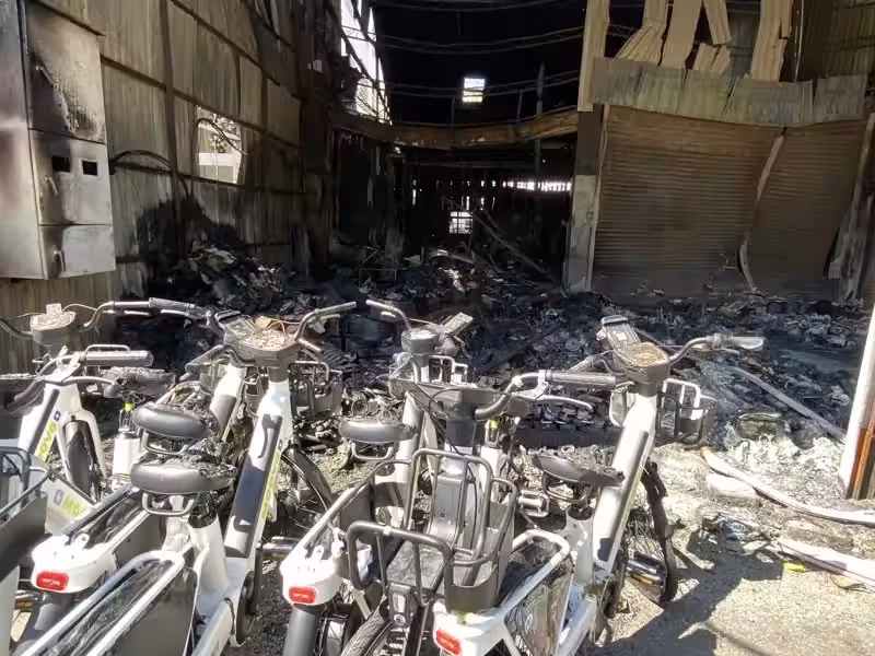 員林市中山路MOOVO自行車檢修區運點倉庫今天凌晨發生大火,倉庫內的自行車和鋰電池都被燒毀。