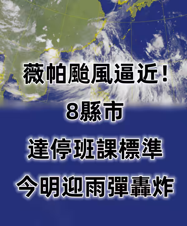 快訊/薇帕颱風逼近!8縣市達停班課標準 今明迎雨彈轟炸