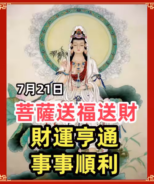 7月21日菩薩送福送財,六大生肖財運亨通,事事順利!