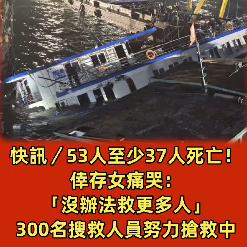 根據《ETtoday新聞雲》報導,越南知名景點下龍灣發生重大船難意外,一艘載有53人的觀光船在19日下午巡航時遭遇突如其來的暴風雨襲擊,導致船隻翻覆,目前已造成37人不幸罹難。
