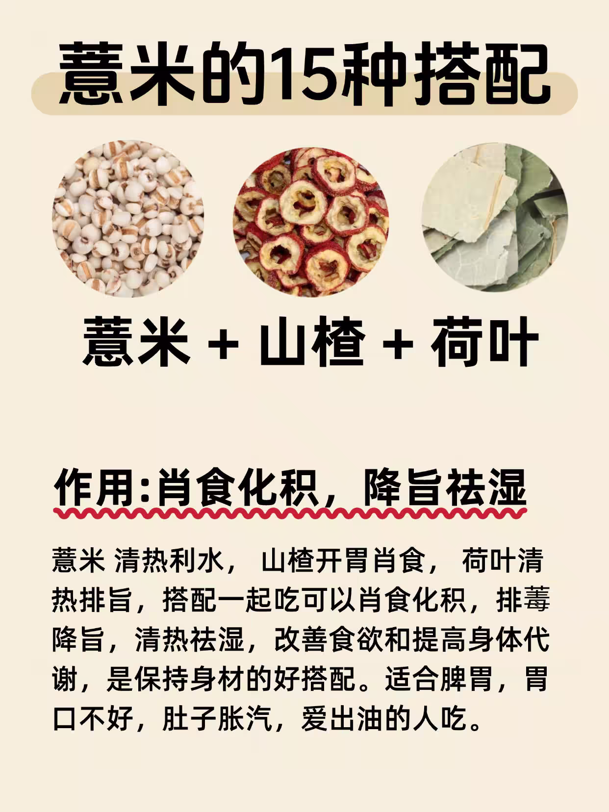 ❽10克薏米+8克山楂+3克荷葉