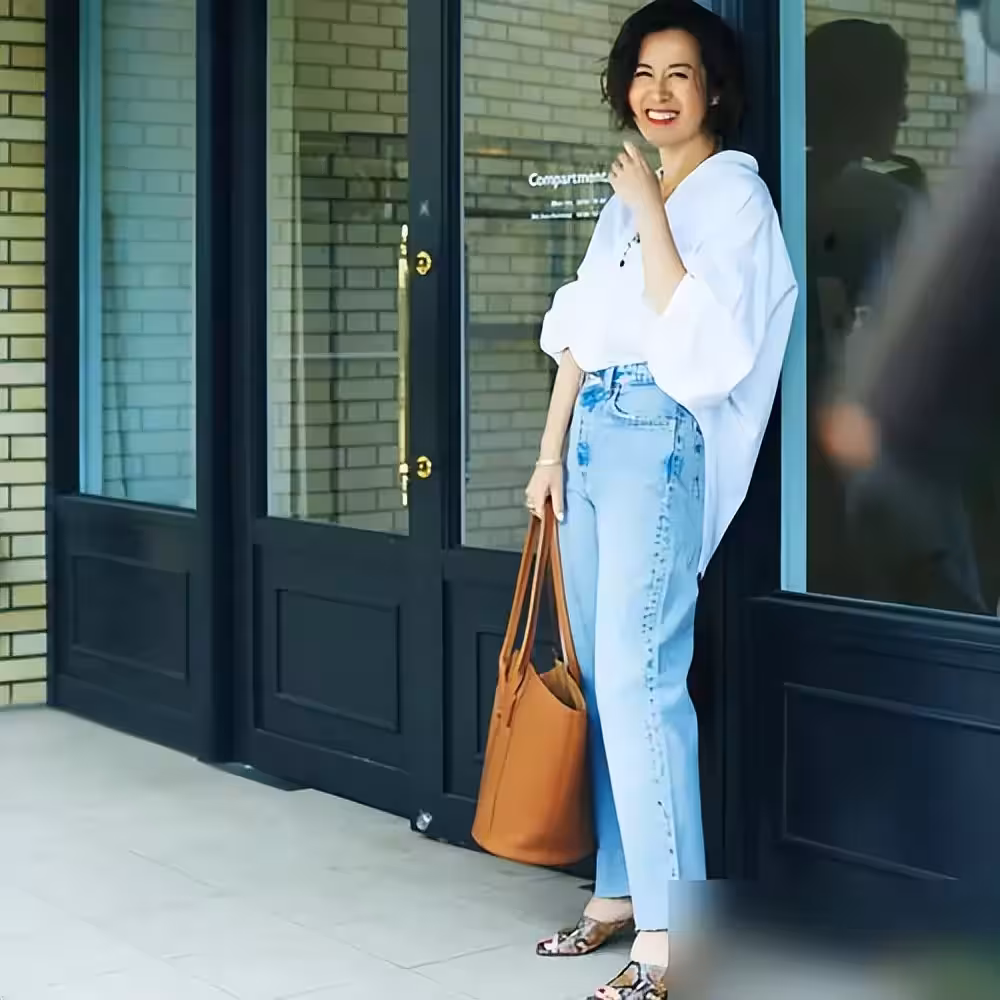 50+穿衣服,顏色別太「炸」。黑、白、灰、駝、米這些基礎色最保險,好搭配還顯氣質。大草直子就愛穿這些顏色,看著幹練又舒服。要是想加點亮色也成,選薑黃、裸粉、薄荷綠這種柔和的,別挑明黃、芭比粉,太扎眼。亮色別穿全身,一件襯衫、一條絲巾就行,點綴得恰到好處,看著高級不花哨。皮膚白的姐妹可以試試淺藍、淺紫,襯得人更透亮;皮膚偏黃的,米白、駝色最穩妥,顯氣色。