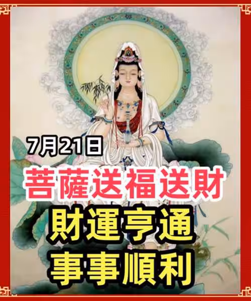7月21日菩薩送福送財,財運亨通,事事順利!