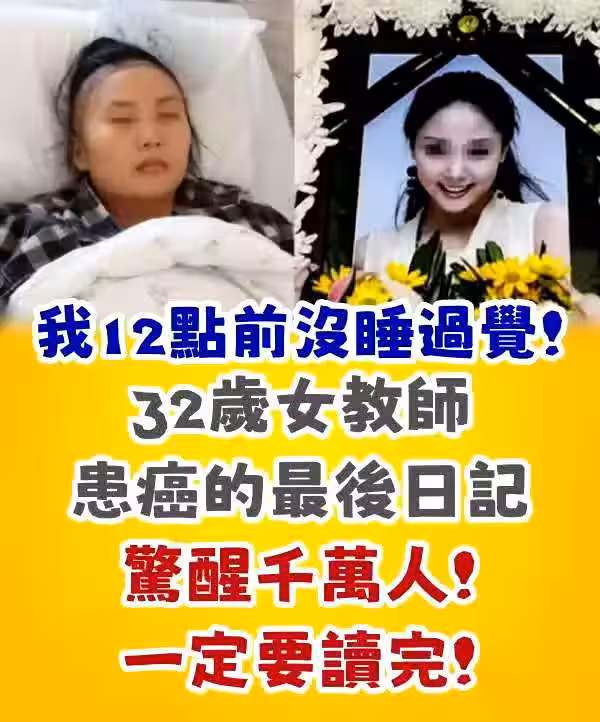 我12點前沒睡過覺!32歲女老師患癌的最後日記,驚醒千萬人!一定要讀完!
