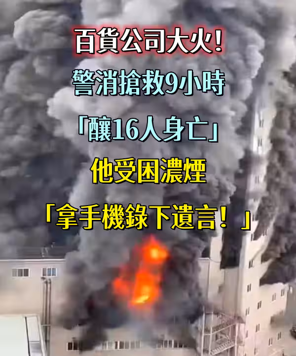 快訊/百貨公司大火!警消搶救9小時「釀16人身亡」 他受困濃煙「拿手機錄下遺言!」