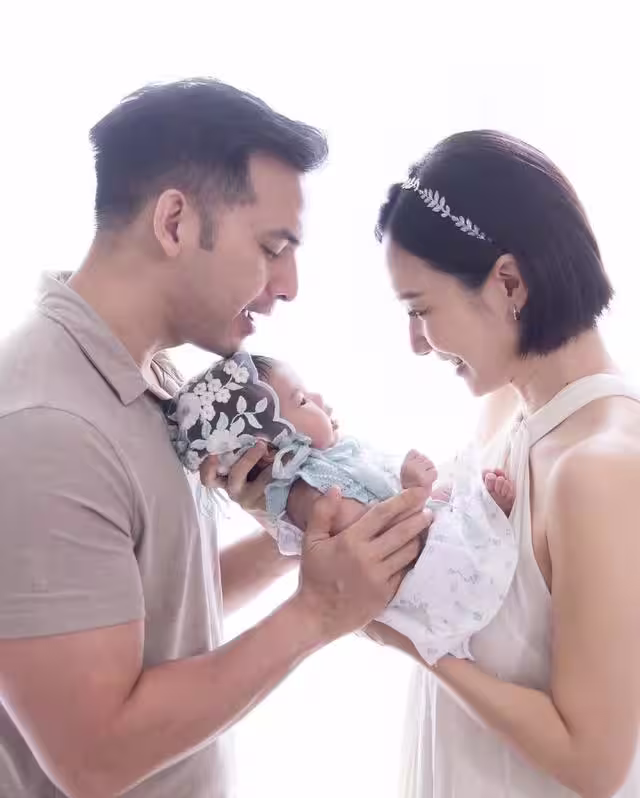 雖然小傢伙現階段還沒有完全長開,但是看得出她的五官還是更像爸爸,看著這個小傢伙,王君馨和老公都不自覺的露出微笑。