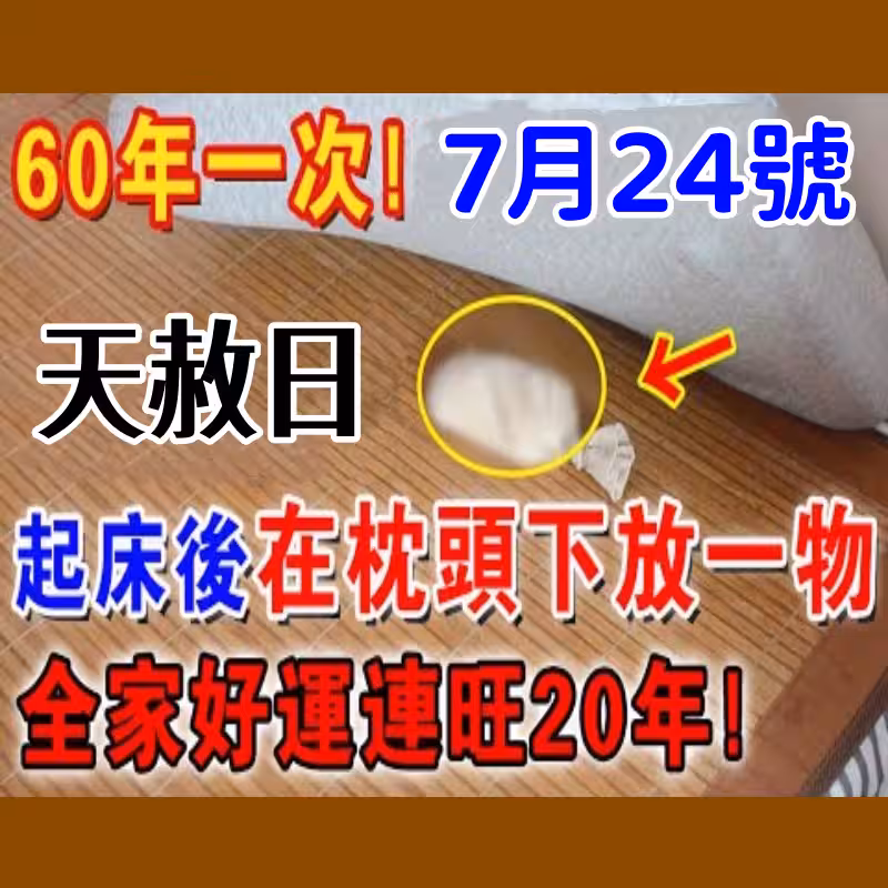 不是迷信!就在7月24號「天赦日」,起床牢記在枕頭下放一物,隔天就有橫財降臨!全家好運連旺20年