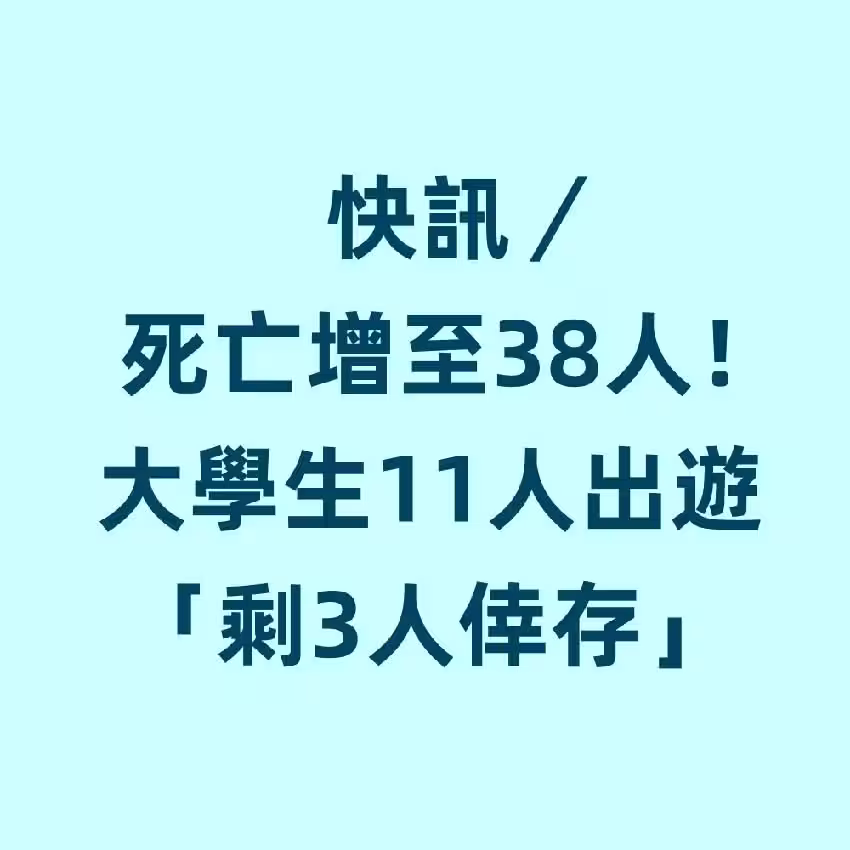 快訊/死亡增至38人!大學生11人出遊「剩3人倖存!」
