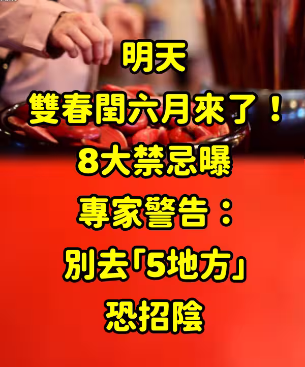 民俗專家楊登嵙指出,本周五(25)日至8月22日正值農曆「閏六月」,這個月份有8大禁忌要特別注意。