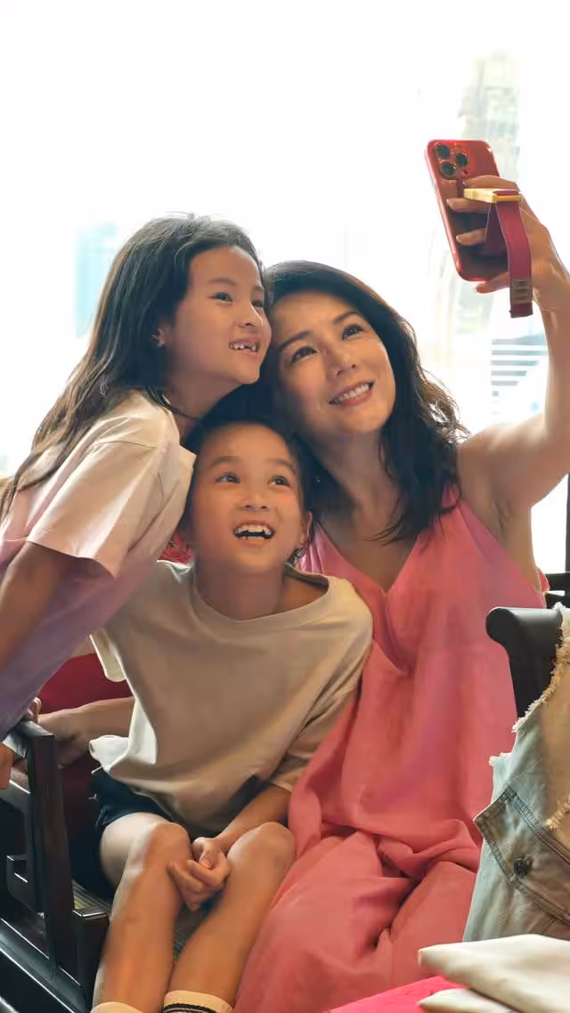 被問及女兒們是否想進娛樂圈時,她透露小女兒說過想當YouTuber或歌手,大女兒則比較害羞。但她並不擔心:"現在是人人都能成名的時代,不一定非要進電視台才能紅。只要有社交媒體和實力,就能成為自己心目中的超級巨星。重要的是從小灌輸正確觀念——我就曾因被嚇到而放棄夢想。當周圍出現太多聲音時,人很容易動搖。"