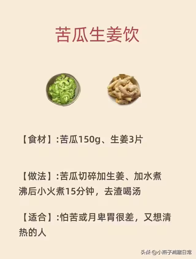 做法:苦瓜切碎加生薑,加水煮沸後小火煮15分鐘,去渣喝湯!