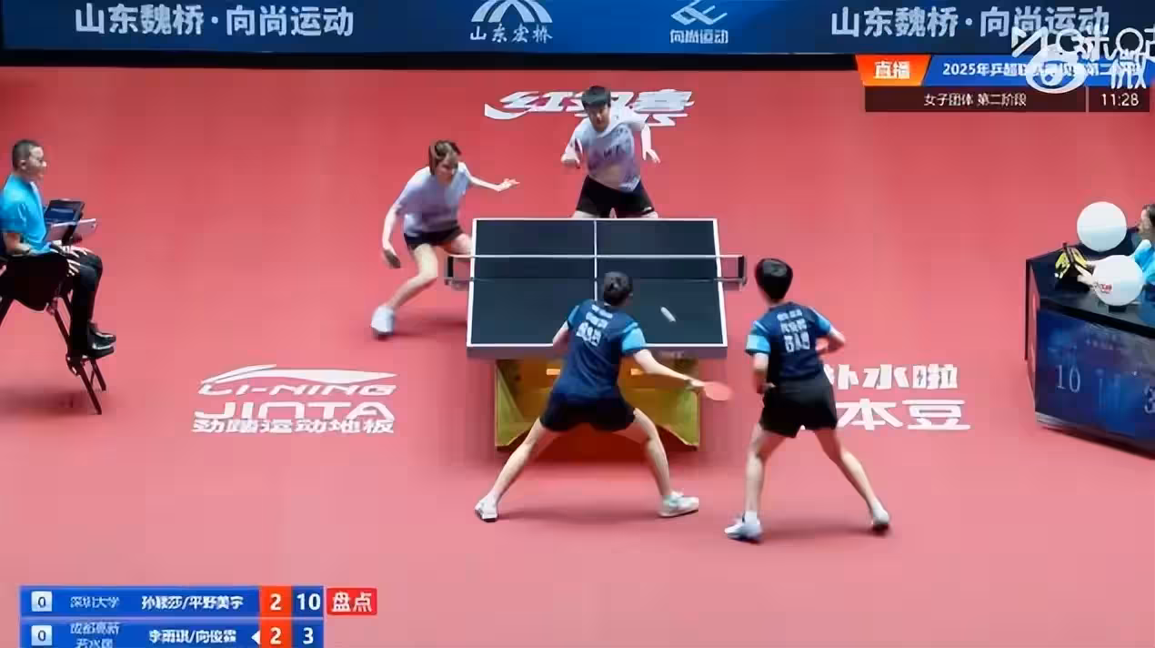 孫穎莎的首秀今天打了雙打,搭檔平野美宇苦戰五局險勝,本賽季是孫穎莎的首秀,前面她沒有出戰比賽,今天也沒有擔任一單,讓小將覃予萱打一單,對手成都高新若水居的實力不是很強。