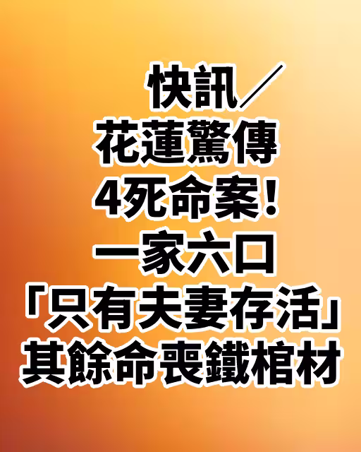快訊/花蓮驚傳4死命案!一家六口「只有夫妻存活」其餘命喪鐵棺材
