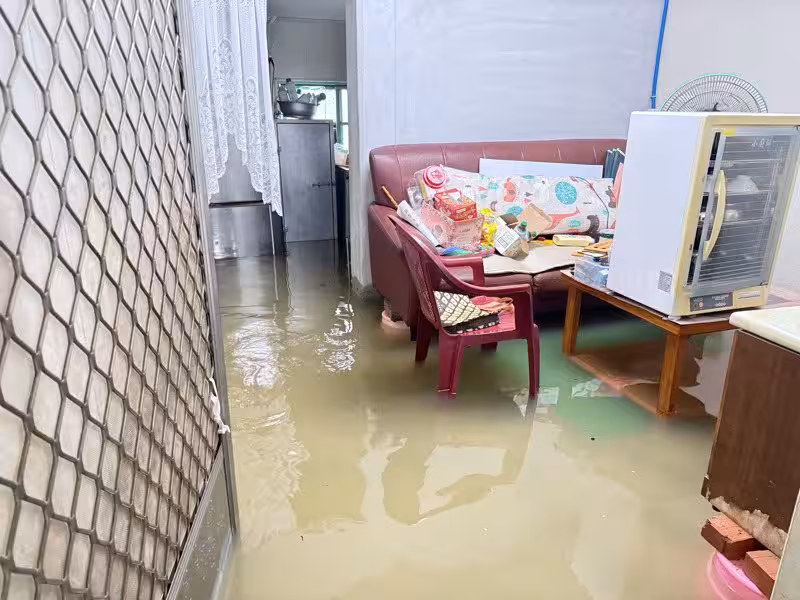 林婦女兒也說,因為請不到鐵工,所有工班都還在排隊,她自己先拿帆布及磚頭蓋在屋頂,但大雨一直下,還是難以抵擋,開始有雨水滲入家中,裂縫都在滴水,淹水來得太快,冰箱和一些電器都來不及搬,現在全都泡在水裡,真的很需要政府幫忙、需要國軍幫忙。