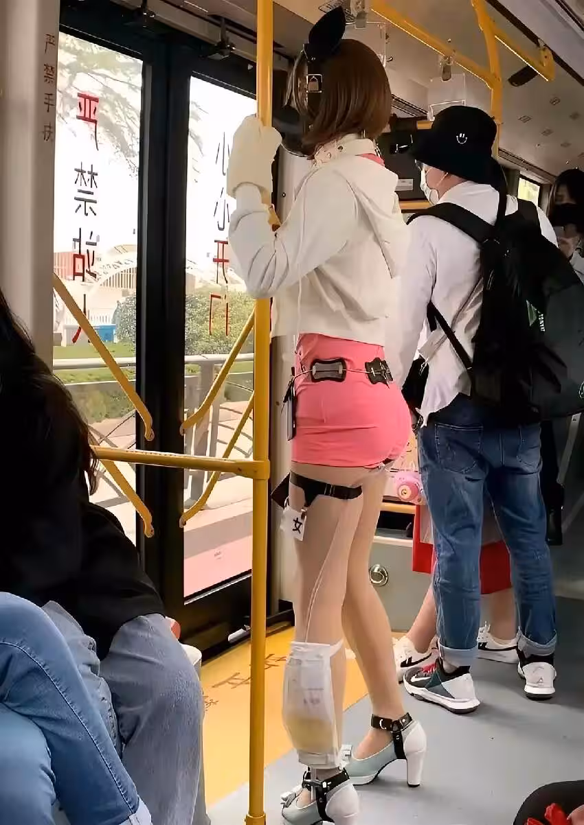 公車上,一位「艷麗妖嬈奇裝女」超搶眼!內行一看她腿,秒懂真相「笑不出來了」全車瞬間沉默!