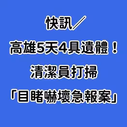 快訊/高雄5天4具遺體!清潔員打掃「目睹嚇壞急報案」