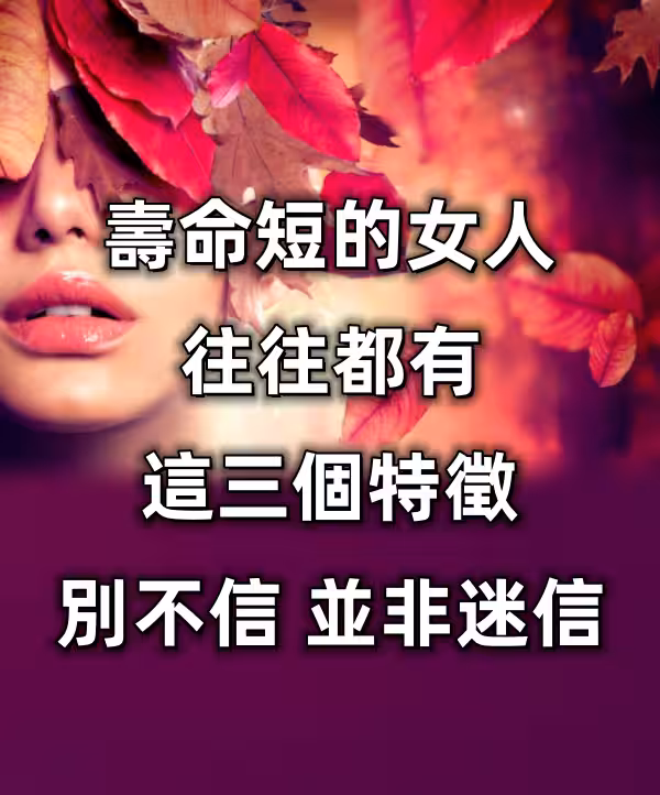 所以說,壽命短的女人,多半是因為自我原因所致,她們往往有以下3個特徵,並非迷信。