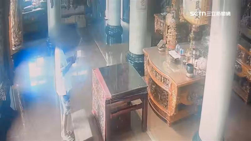男子雙手拿香,看似對著神明虔誠拜拜,不過隨後他的行為卻令人髮指。