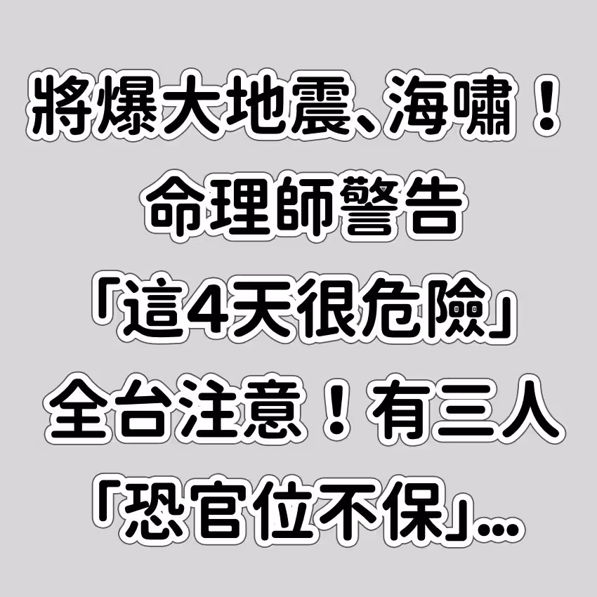 將爆大地震、海嘯!命理師警告「這4天很危險」全台注意😲😲 有三人「恐官位不保」...