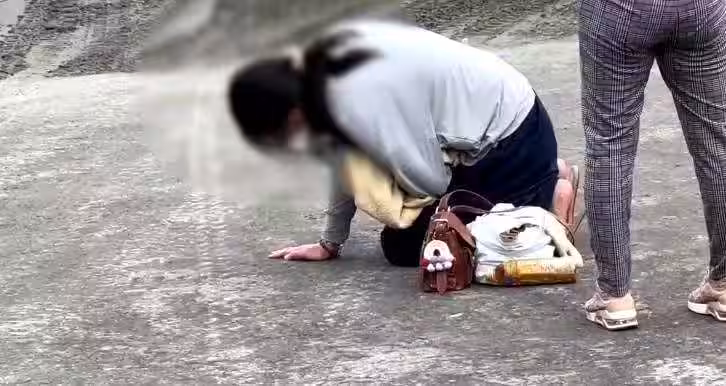 吳男媽媽在海邊跪地祈求兒子趕快回家。(圖/東森新聞)