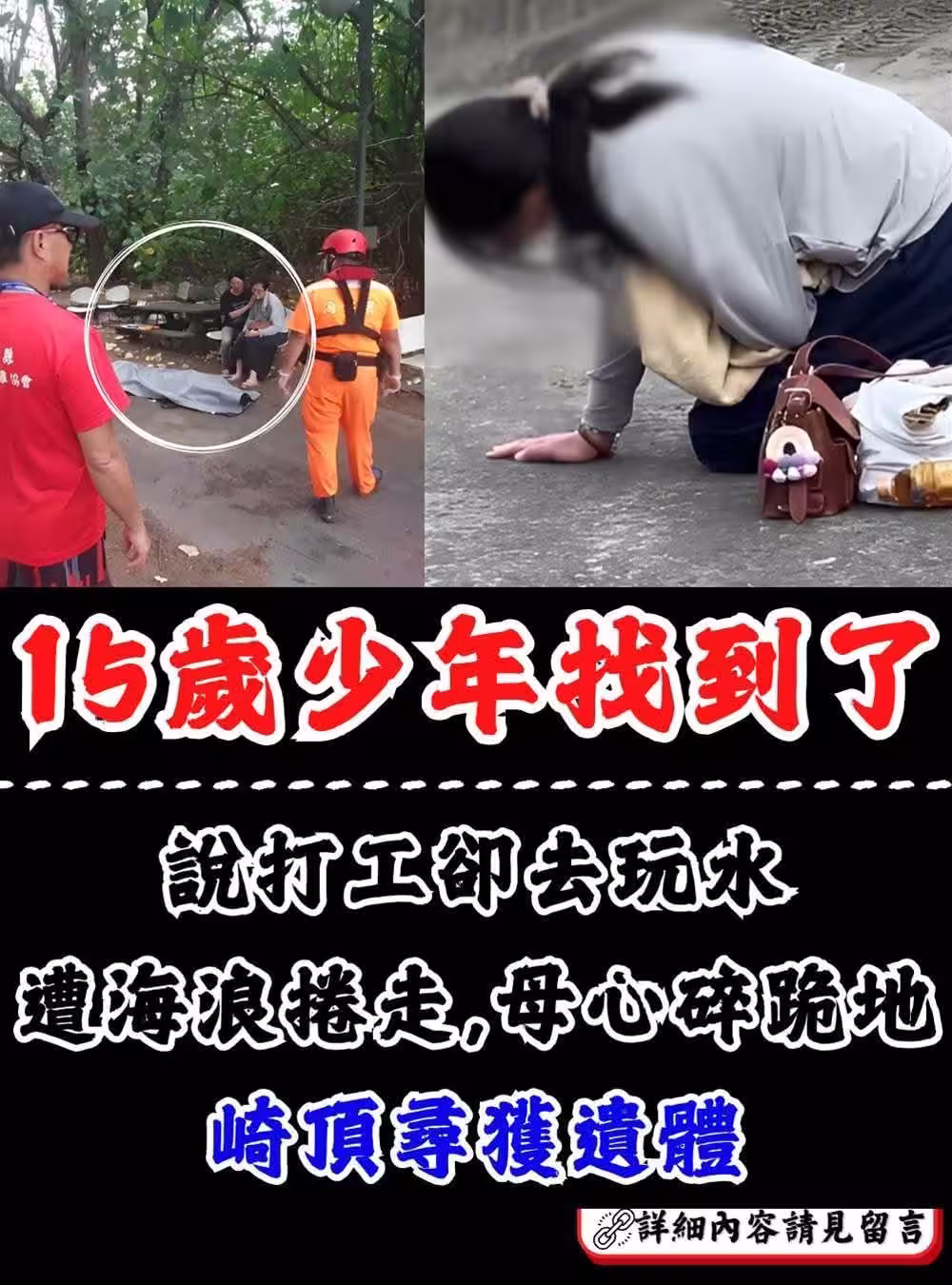 快訊/15歲少年找到了!玩水遭浪捲走,崎頂尋獲遺體!