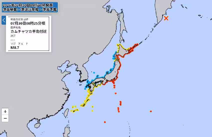 受到地震影響,從北海道延伸至和歌山縣的太平洋沿岸地區全面拉起警報,居民被要求立即撤離危險區域。