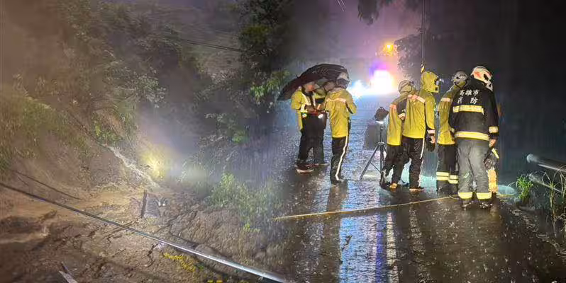 這起意外發生在昨晚21時54分,警方獲報六龜區台20線81.1公里處有車輛墜谷,車上疑似為一家5口,立即趕抵警戒,由於現場強降雨,視線不良,路面有落石坍方,增加救援難度,消防局出動16車31人前往搶救,目前尚未發現人車,持續搜救中。