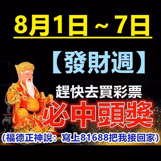 8月1日~7日【發財周】趕快去買彩票,必中頭獎的生肖
