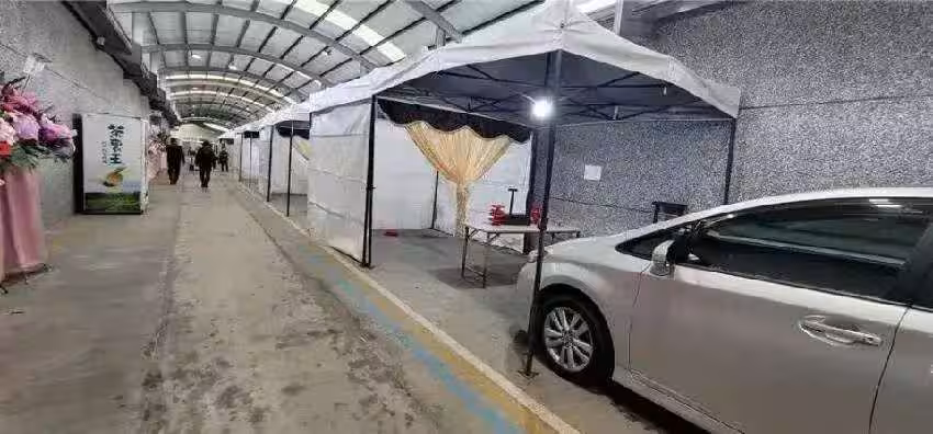 屏東市殯葬禮儀廳更出現罕見大爆滿,殯葬業者要搭臨時帳篷應急。