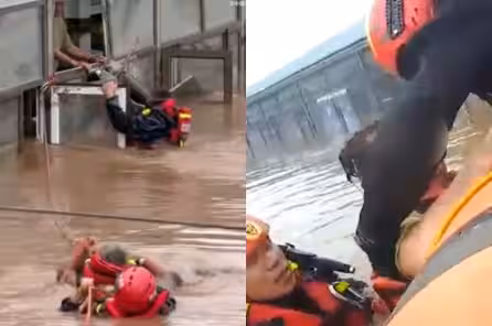 直到上午10點,消防人員才成功搭建繩索通道,開始分批撤離受困人員。