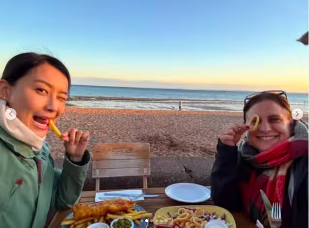 如今國內不少城市的氣溫動輒三四十度,但陳法拉卻穿著長袖外套加上圍脖,小編也去查了一下愛丁堡的溫度,最近最高溫度基本都是20度左右,難怪陳法拉會穿這麼多,可以看出來陳法拉很享受美食和這裡的溫度。