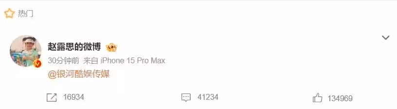 8月2日下午,趙露思發布微博@銀河酷娛傳媒,相關話題衝上熱搜。