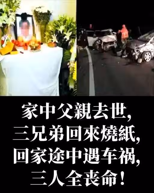 家中父親去世,三兄弟回來燒紙,回家途中遇交通事故 ,三人全喪命!