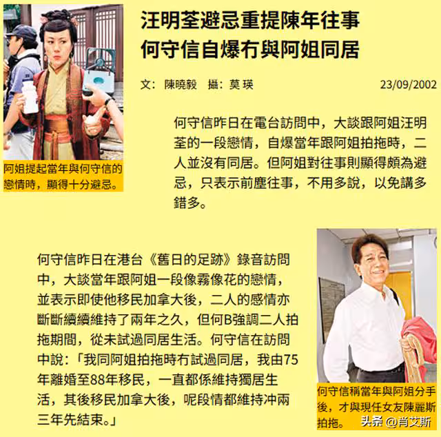 對於舊情,汪明荃始終不願提及,甚少對外談論細節,倒是何守信將這段戀情形容為像霧像花,並表示拍拖期間未同居,現任太太陳麗斯乃感情結束後再開始。