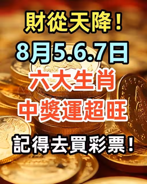 財從天降!8月5.6.7日中獎運超旺六大生肖,記得去買彩票!