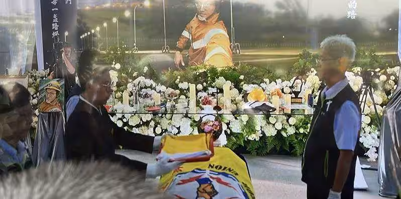 台電英雄告別式/李元瀚幼女懵懂,愛妻抱起鞠躬永別:今生來世永遠愛你!