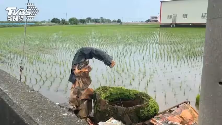 由於這幾天豪雨不斷,導致水稻田淹水,而剛插秧不久的秧苗面臨被淹死的風險,所以江姓青農才會冒雨前往田間抽水。