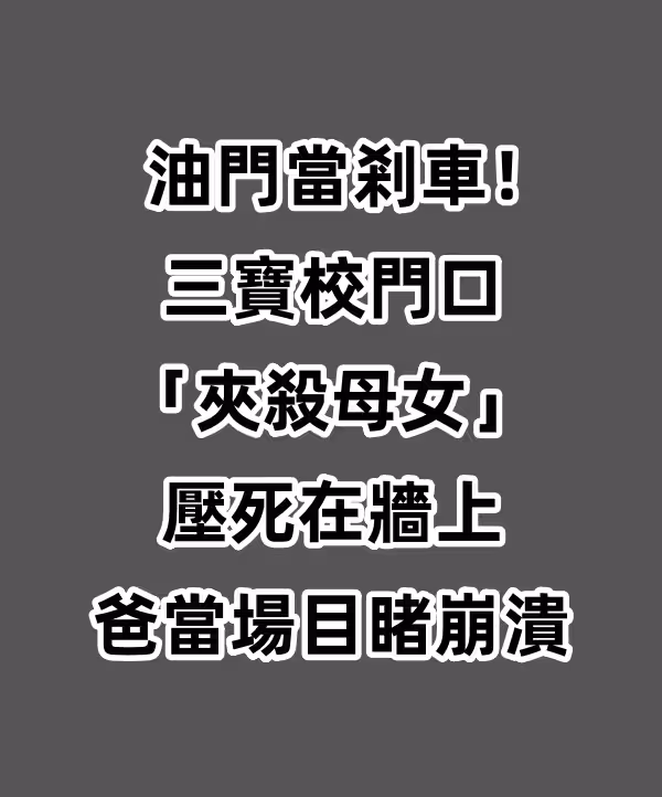 突發/油門當剎車!三寶校門口「夾殺母女」壓死在牆上 爸當場目睹崩潰