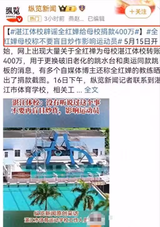 這種造謠特別惡毒,表面上看是在夸全紅嬋,說她多麼無私奉獻。可實際上這就是赤裸裸的捧殺,全紅嬋今年才18歲,一個剛成年的孩子,哪來的400萬?