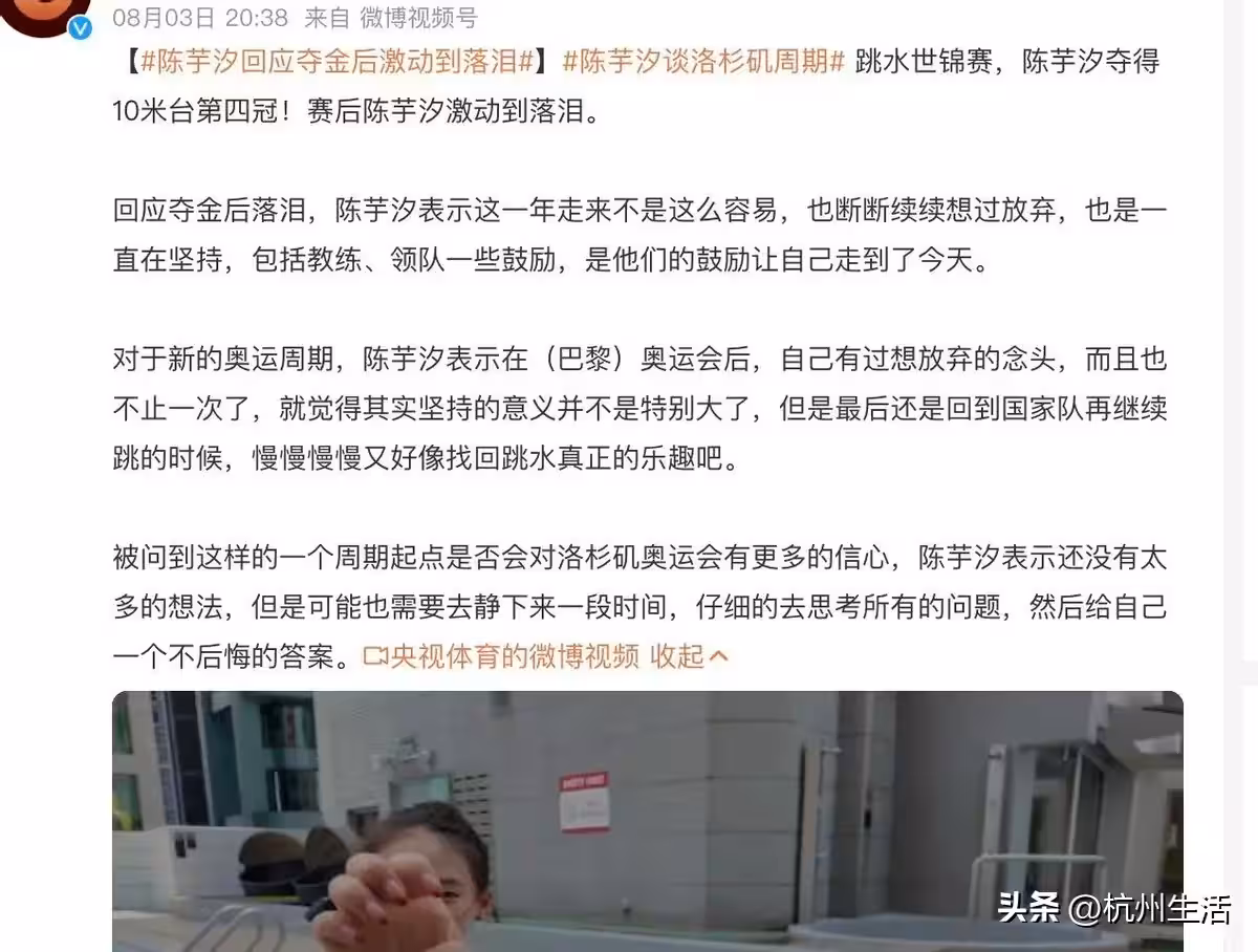 在世錦賽決賽的那一天,泳池邊的記者席幾乎爆炸,所有人都盯著她出場,緊張的氣氛瀰漫整個賽場。她的每一個動作都顯得那麼精準和果敢,仿佛她的眼神已經成為了銳利的刀刃,每一個跳躍都充滿了力量和決心。水花激起的瞬間,細如針尖,似乎承載了她所有的努力和情感。那一刻,她完全放下了所有的包袱,只為自己而跳。三次完美的跳躍,令人嘆為觀止,最後的分數一出,整個賽場的氣氛都凝固了,陳芋汐自己都不敢相信,這個冠軍真的是屬於她的。