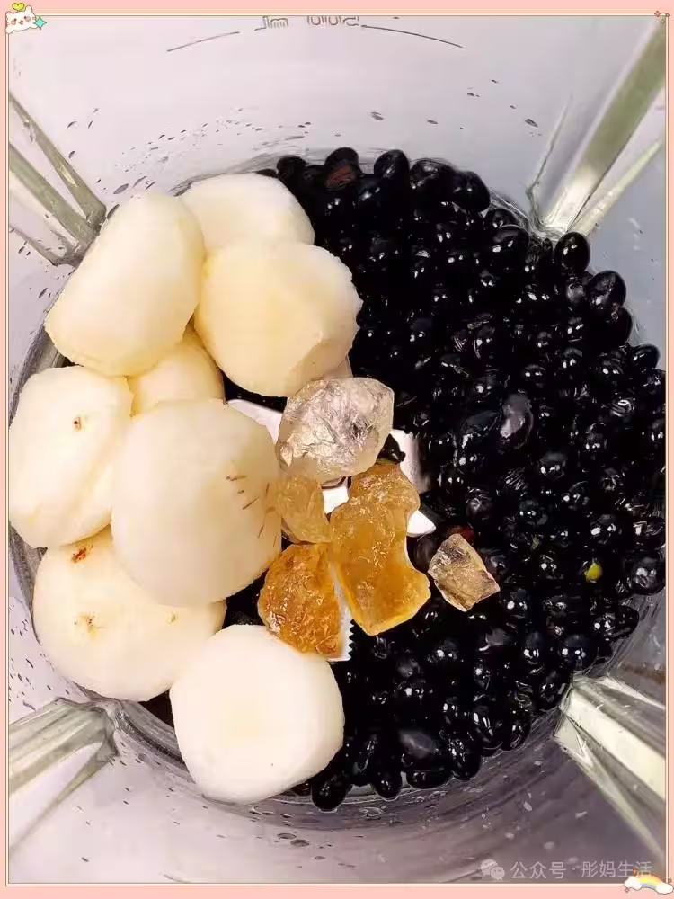 簡單的很,黑豆洗好,馬蹄,再點冰糖,要是喜歡甜一點的,可以多放幾顆 。一起放入破壁機打碎就可以。
