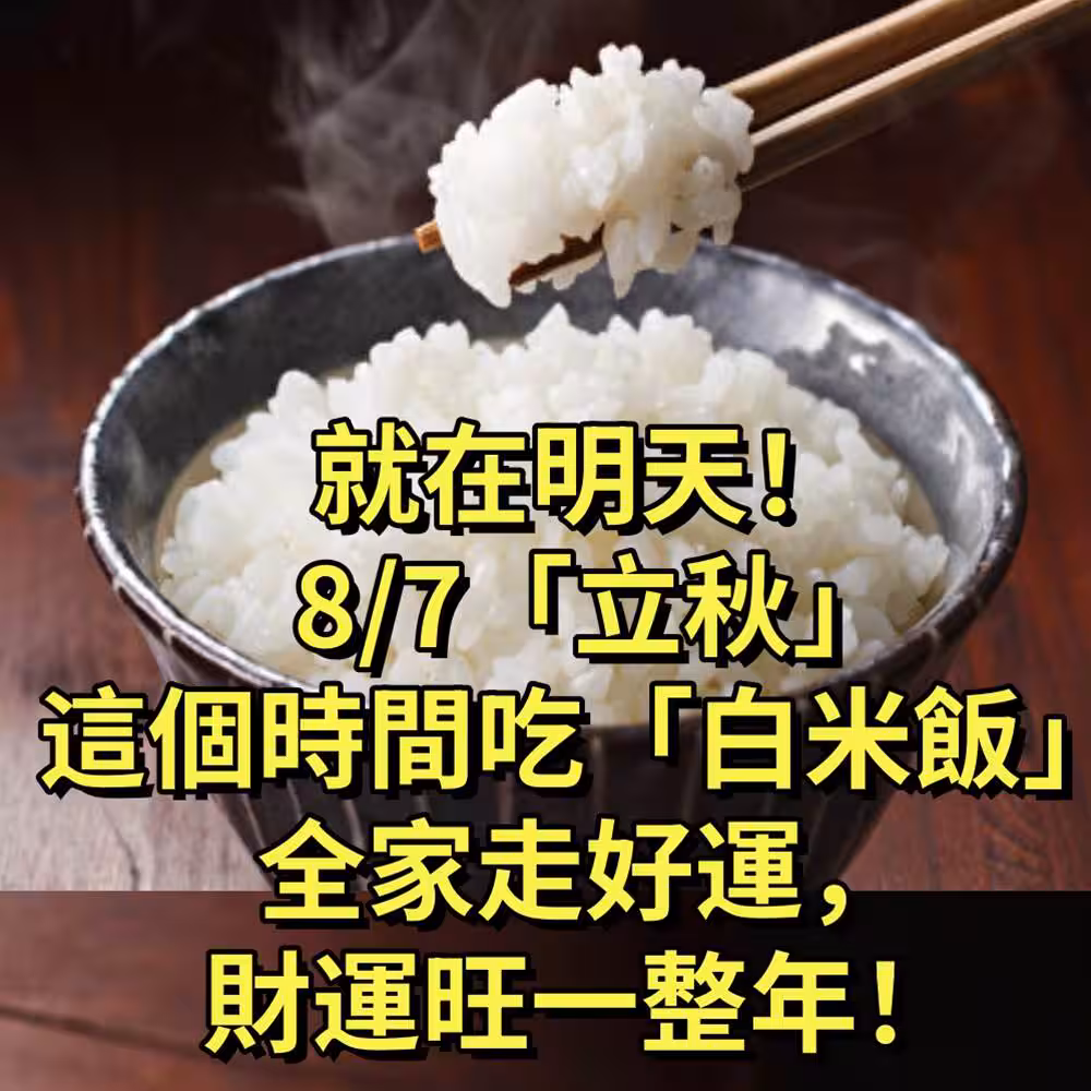 📅 就在明天!8月7日「立秋」這個時間吃白米飯,全家走好運,財運旺一整年! 🍚🍀💰🏡
