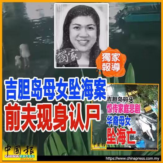 (吉隆坡7日訊/獨家報導)吉膽島發生母女墜海身亡的悲劇案後,女死者的前夫已主動聯絡警方,並前往巴生中央醫院太平間認領妻子與女兒的遺體。