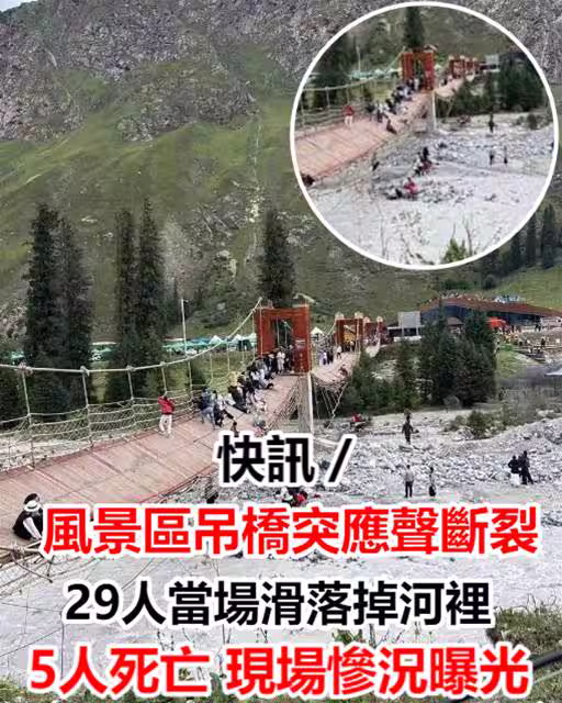 快訊/風景區吊橋突應聲斷裂!29人當場滑落掉河裡「現場慘況曝光!」