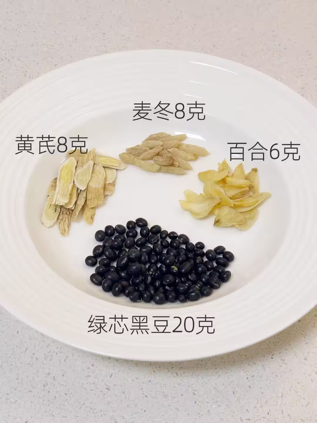 這款煮的時間稍長些,豆子更軟糯。百合煮得粉粉的,湯水清潤,北芪片帶來一點獨特的草本氣息,整體感覺非常平和。晚餐後喝上一杯,感覺整個人都放鬆下來了,尤其適合想清清淡淡喝點東西的晚上。