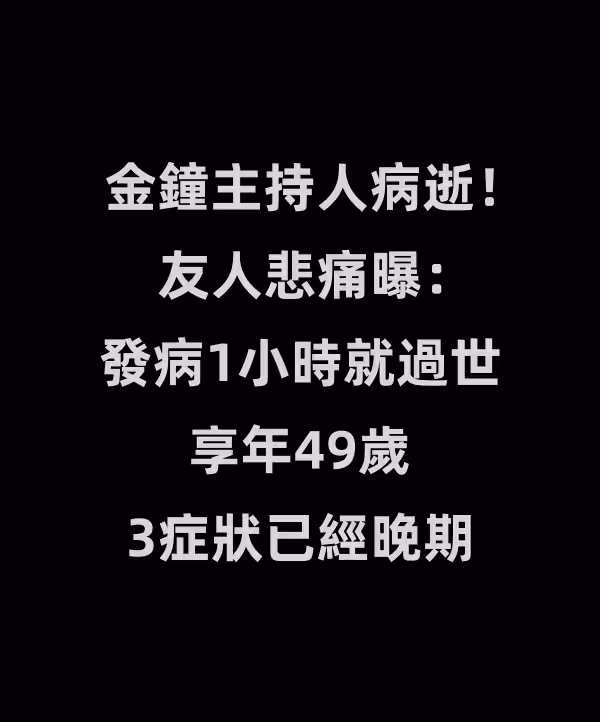 金鐘主持人病逝!友人悲痛曝:發病1小時就過世,享年49歲3症狀已經晚期