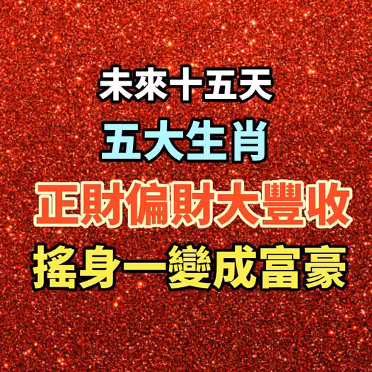 未來十五天正財偏財大豐收,五大生肖搖身一變成富豪