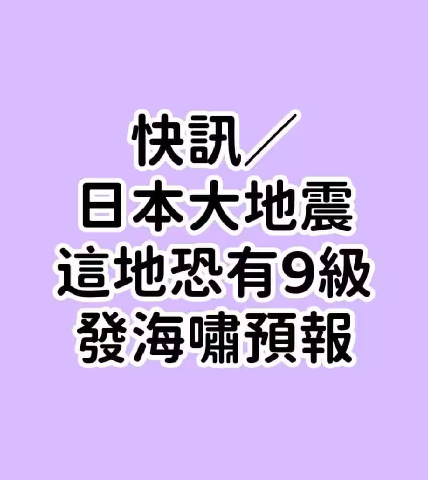 快訊/日本大地震!這地恐有9級 發海嘯預報!