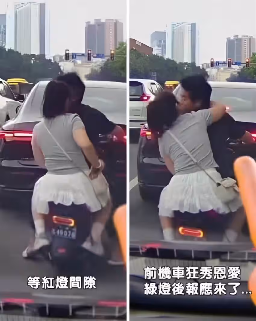 紅燈間隙「前機車男女」狂秀恩愛!綠燈一亮「下場」笑翻全網:報應來了