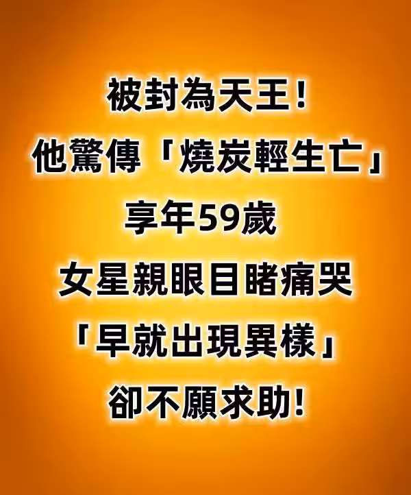 被封為天王!他驚傳「燒炭輕生亡」享年59歲 女星親眼目睹痛哭「早就出現異樣」:卻不願求助!